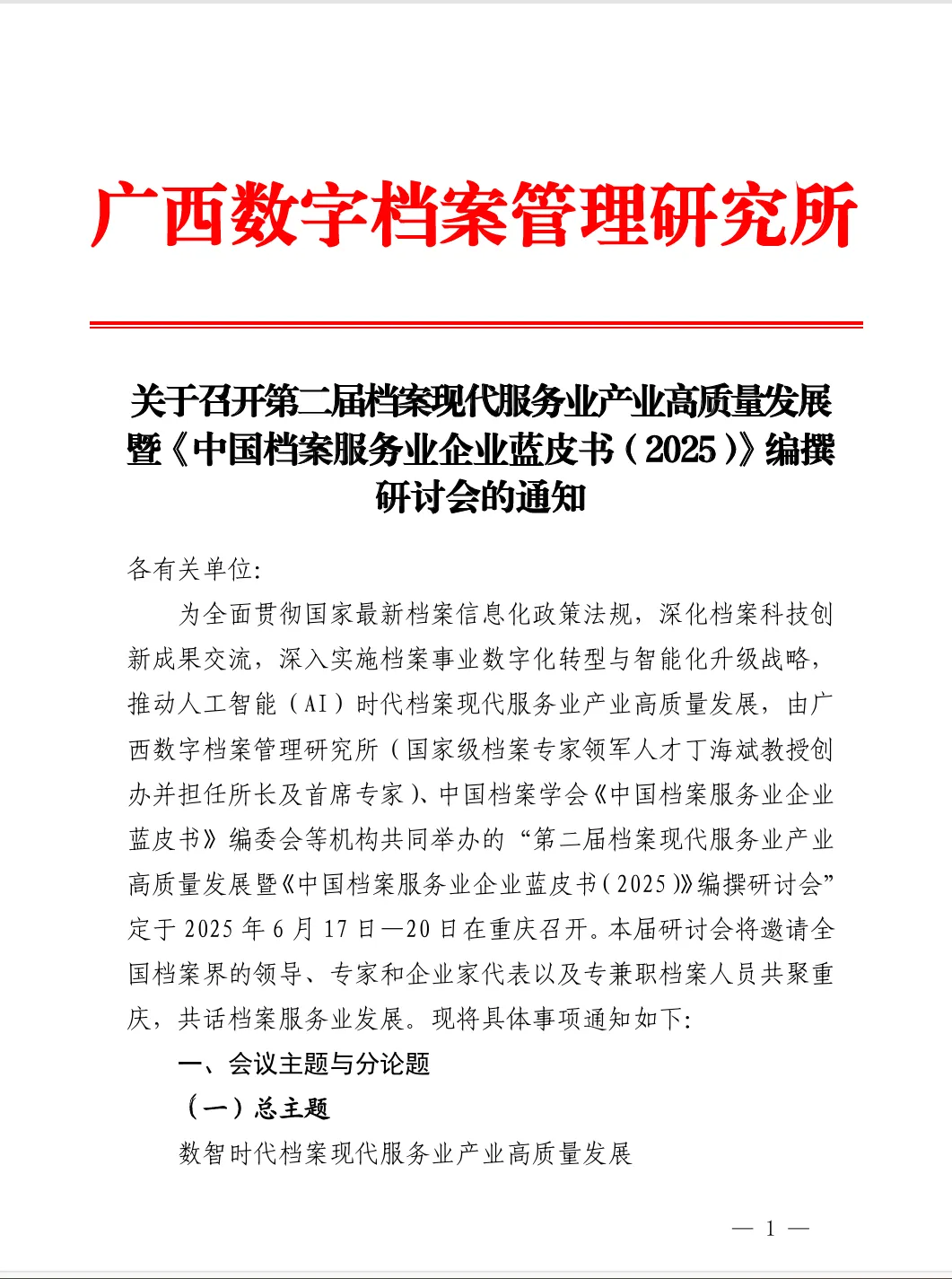 2025年6月19日,由广西数字档案管理研究所、数字档案管理与档案服务业研究中心、《中国档案服务业企业蓝皮书》编委会主办的“第二届档案现代服务业产业高质量发展暨《中国档案服务业企业蓝皮书(2025)》